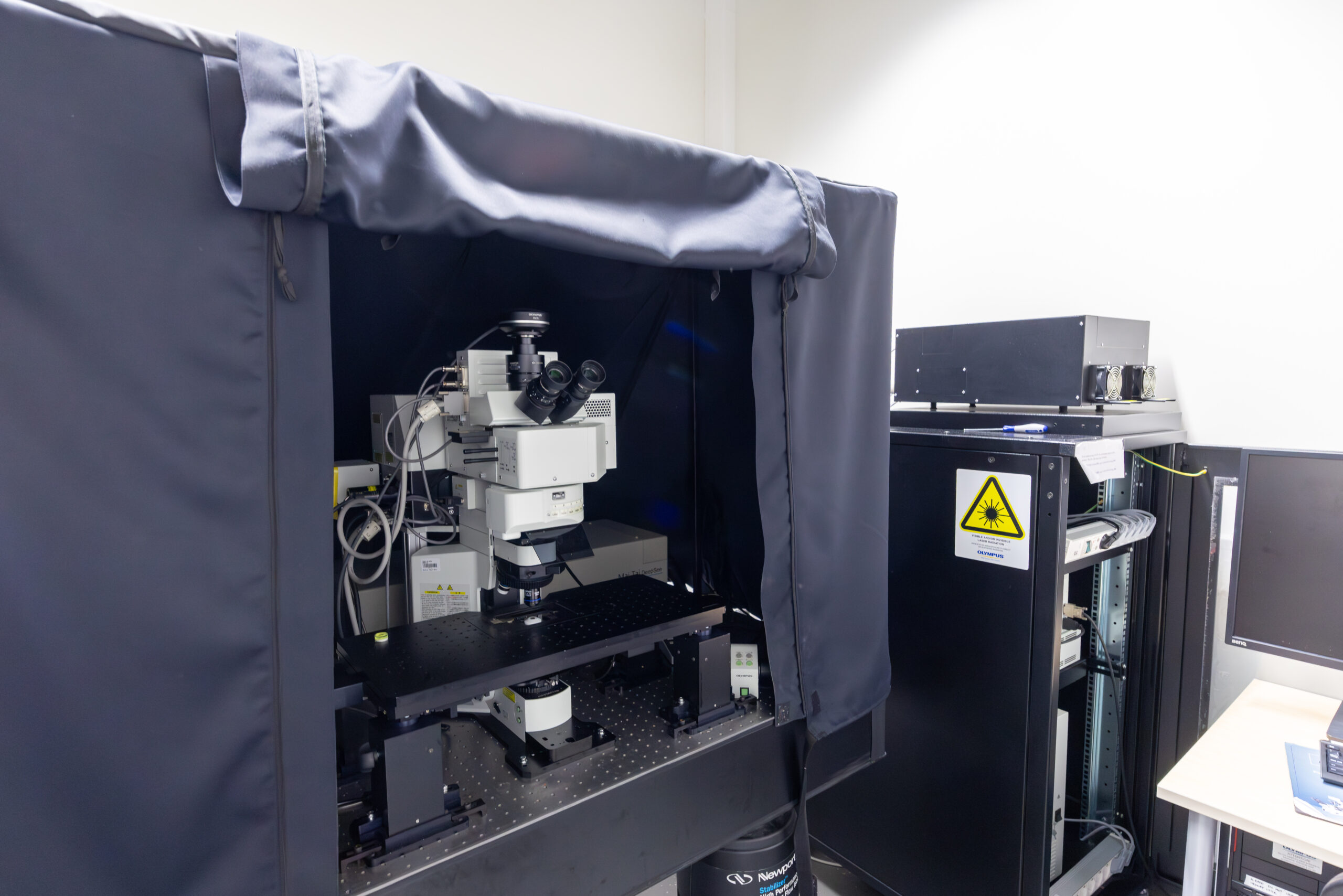 Our lab is equipped with a range of advanced imaging platforms that support high-resolution, in vivo, and translational studies. We have an Olympus multiphoton/confocal imaging system, which allows detailed visualization of cells, tissues, and dynamic processes at subcellular resolution. For deep tissue and whole-organ imaging, we have access to advanced facilities including a 9.4T Bruker MRI system, enabling high-resolution structural and functional imaging in small animals. Complementing these, our near-infrared (NIR) and luciferase imaging systems provide sensitive, real-time monitoring of biological processes, biodistribution, and therapeutic effects in live animal models. Together, these imaging capabilities allow us to investigate nanoparticle delivery, tumor targeting, vascular biology, and neural interfaces with precision and flexibility.