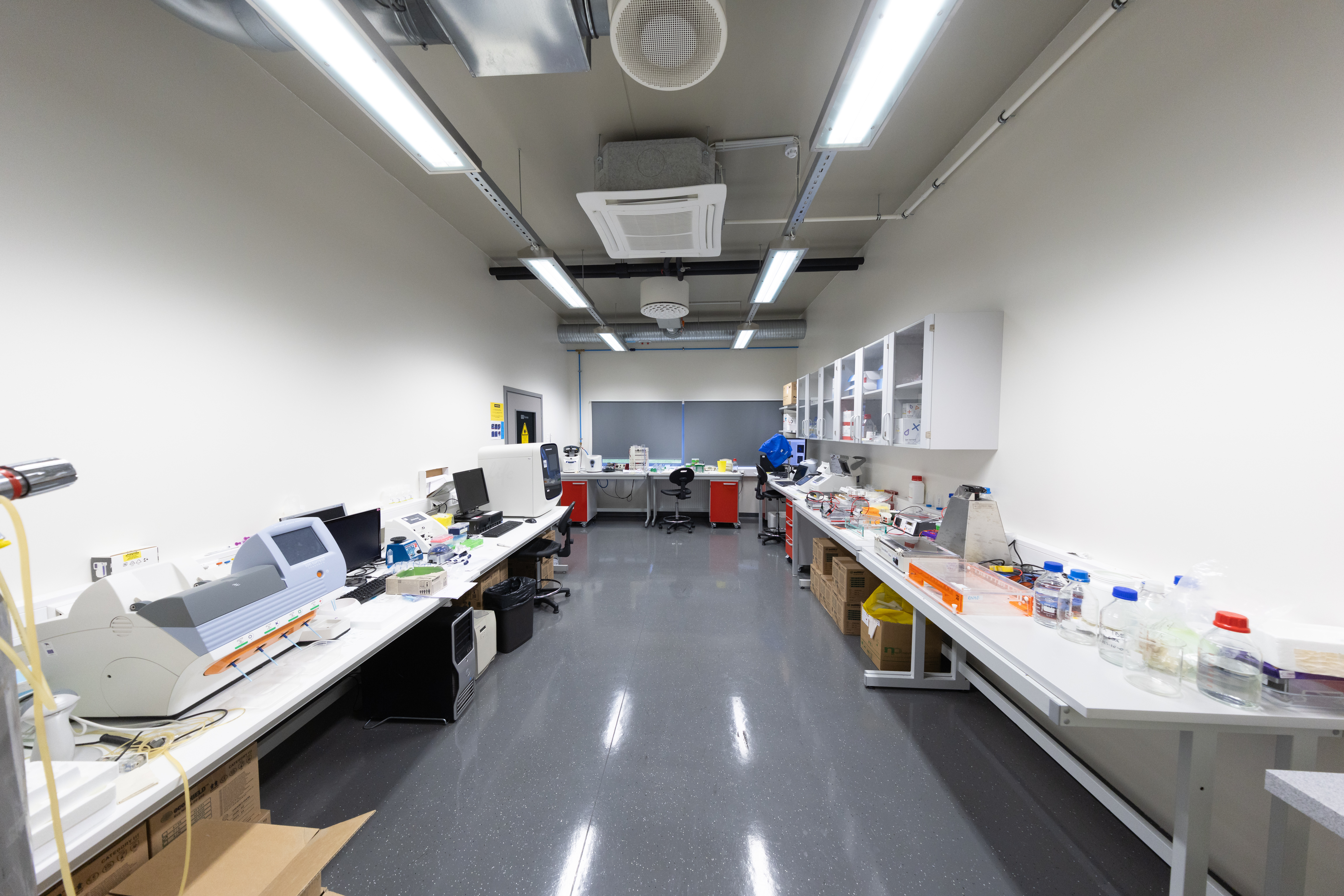 The laboratory is equipped with standard instruments needed for multidisciplinary research, including centrifuges, shakers, spectrophotometers, microscopes, cryostats, flow cytometers (FACS), NanoDrop, plate readers, thermocyclers including qPCR, and protein and nucleic acid gel electrophoresis systems. These facilities enable a wide range of experimental approaches, from basic molecular biology to advanced cellular and nanotechnology studies.